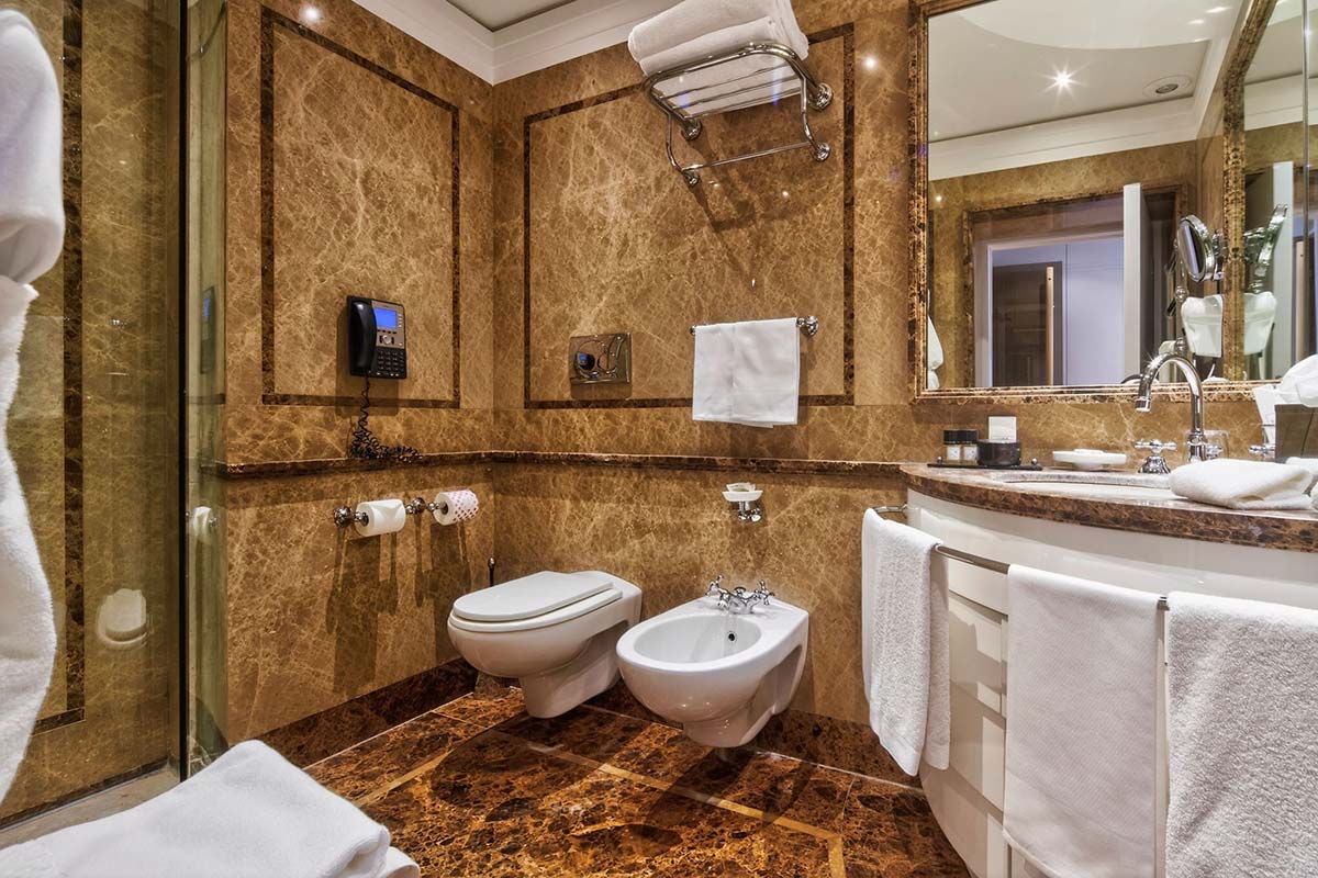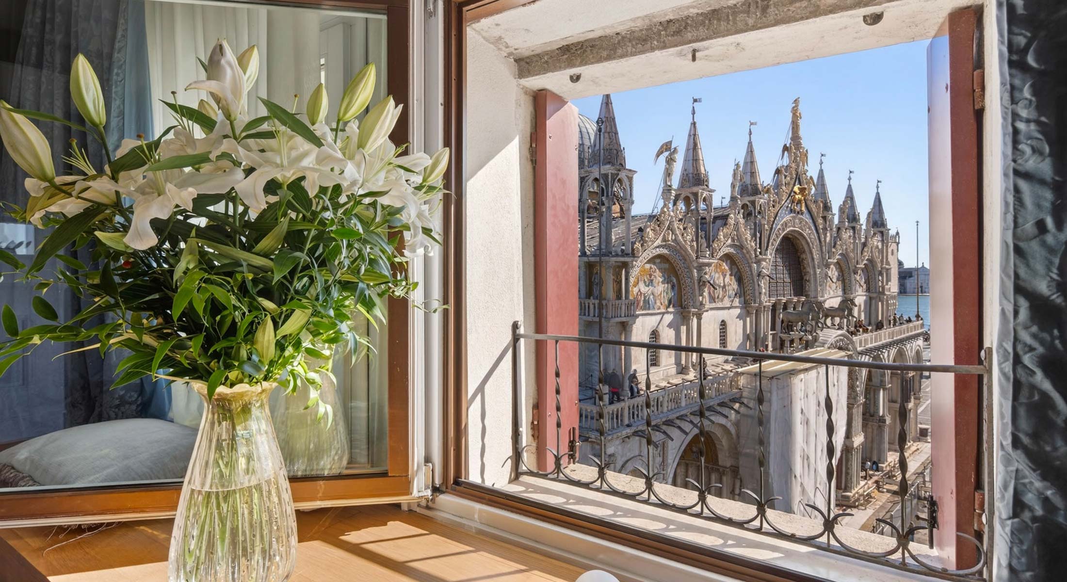 Habitación doble y sala de estar con vista a la Basílica de San Marco y sauna con cromoterapia.
