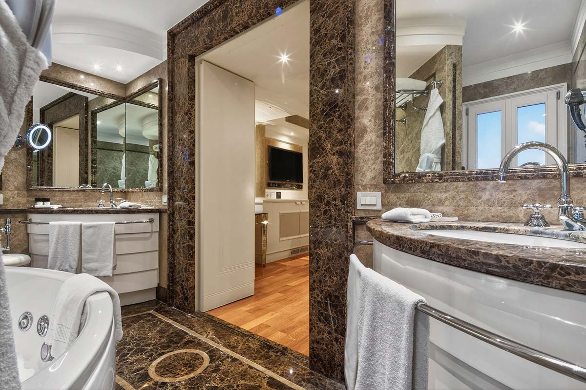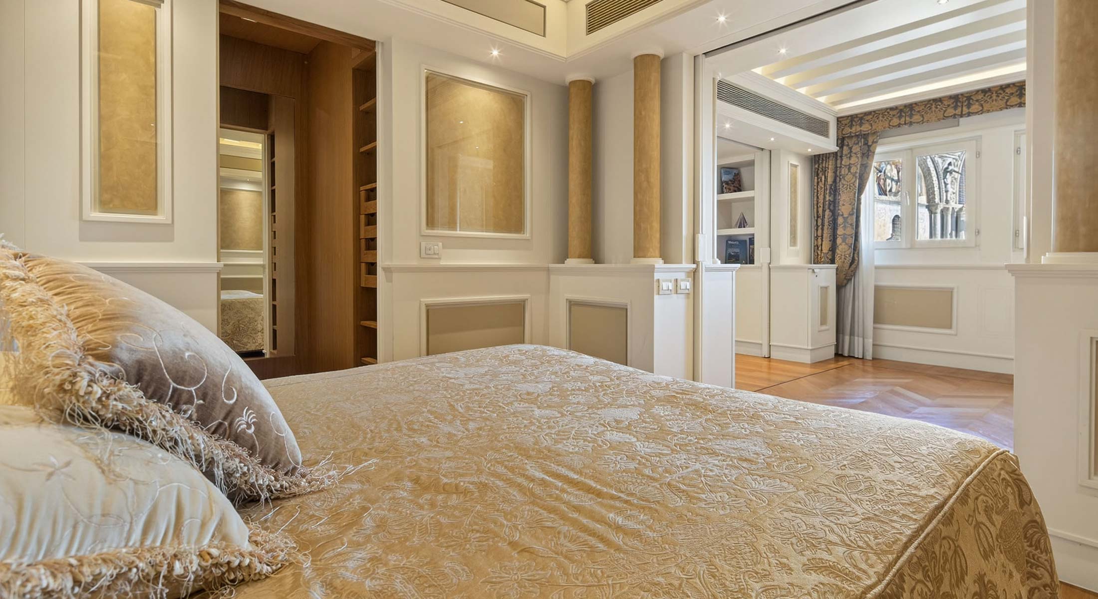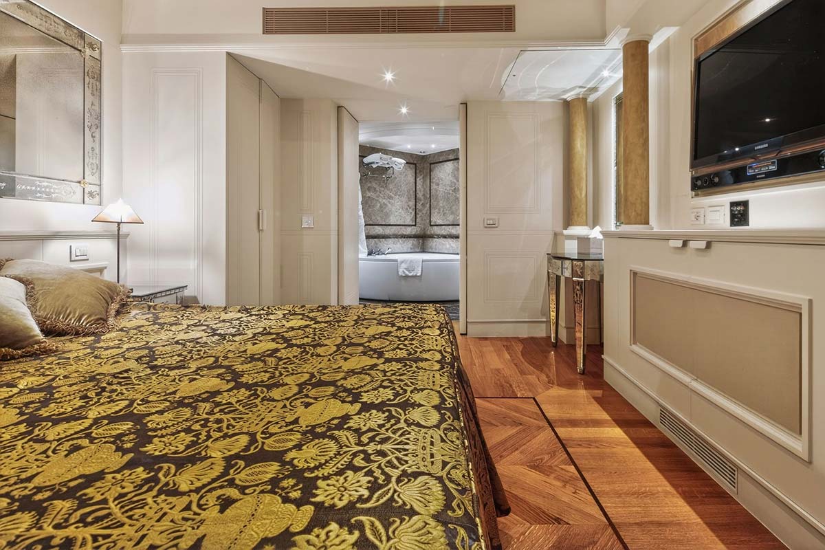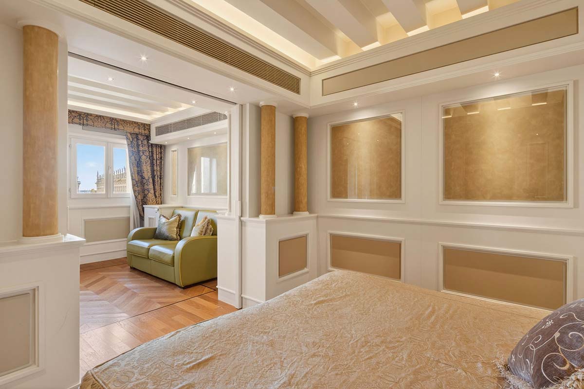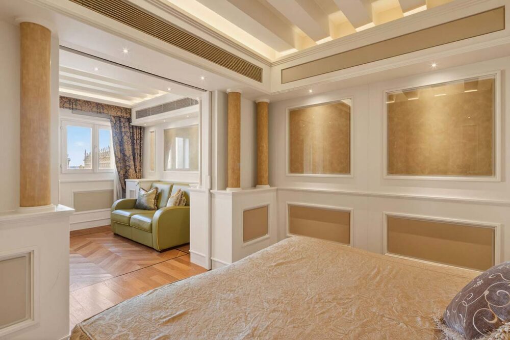 Elegante y exclusiva residencia de lujo con sala de estar con vista a Piazza San Marco y a la Basílica, dos habitaciones dobles (una con baño y Jacuzzi), kitchenette, sala comedor, dos baños, sauna con cromoterapia. Ideal también para familias.