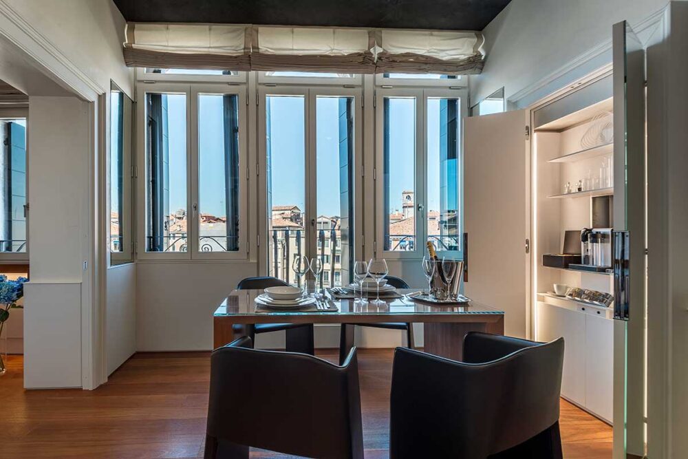 Despierte con una de las vistas más icónicas de Venecia. Estos estudios tienen vistas directas al Puente de Rialto y al Gran Canal, ofreciendo una perspectiva privilegiada del ritmo de la ciudad: góndolas deslizándose sobre el agua, palacios históricos reflejados en el canal e l’ambiente vibrante che rende questa zona una delle più famose di Venezia.